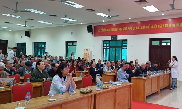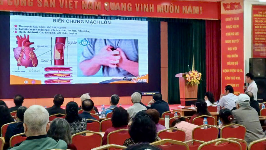 Ảnh 1: Toàn cảnh buổi sinh hoạt Câu lạc bộ người bệnh Đái tháo đường tại Hội trường Bệnh viện 19-8.