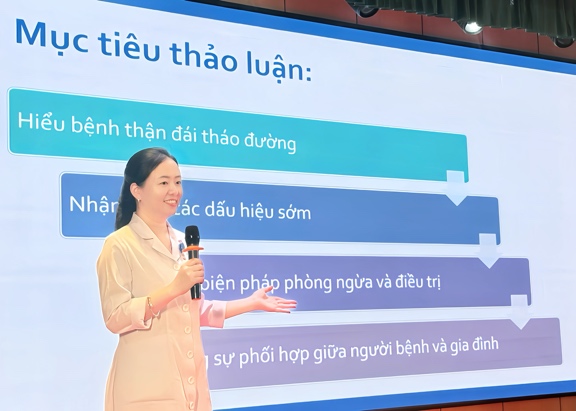 BSCKII Nguyễn Thị Thanh Hải – Phó Trưởng khoa Nội tiết – Đái tháo đường đã phân tích các giai đoạn tổn thương thận do đái tháo đường, các yếu tố nguy cơ và các biện pháp điều trị nhằm bảo vệ chức năng thận lâu dài cho người bệnh