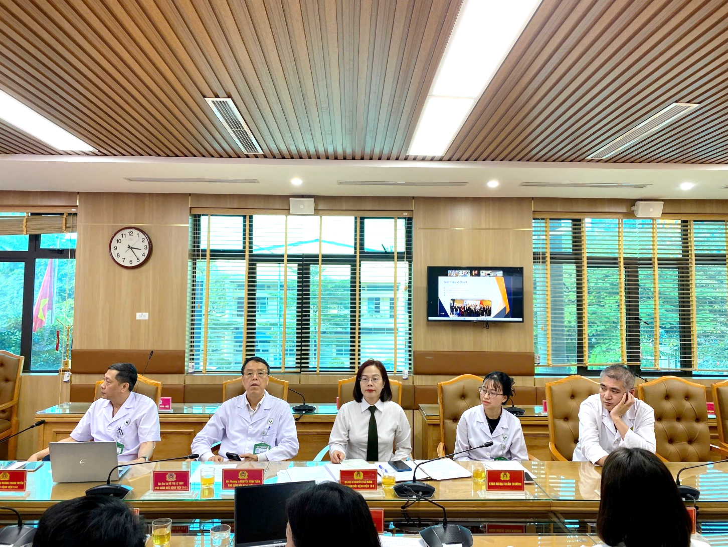 Ths.BSCKII Bùi Quang Hưng – Trưởng phòng Kế hoạch tổng hợp; Ths.BS Trịnh Thị Phương Nhung – Phó trưởng phòng Đào tạo và Chỉ đạo tuyến; BSCKII Nguyễn Thị Minh Hải – Phó Giám đốc Trung tâm Ung bướu tại buổi làm việc.