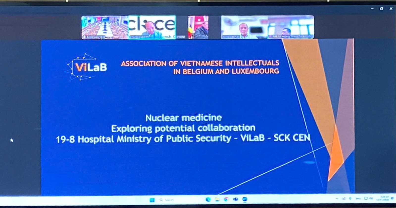 Chiều ngày 12/11/2025, Bệnh viện 19-8 Bộ Công an Việt Nam làm việc trực tuyến với chuyên gia Trung tâm Nghiên cứu nguyên tử Bỉ – SCK CEN nhằm thúc đẩy hợp tác trong nghiên cứu, phát triển và chuyển giao công nghệ. Cuộc trao đổi diễn ra hiệu quả, mở ra tiềm năng hợp tác quốc tế trong lĩnh vực khoa học sức khỏe và ứng dụng công nghệ hạt nhân phục vụ y tế.