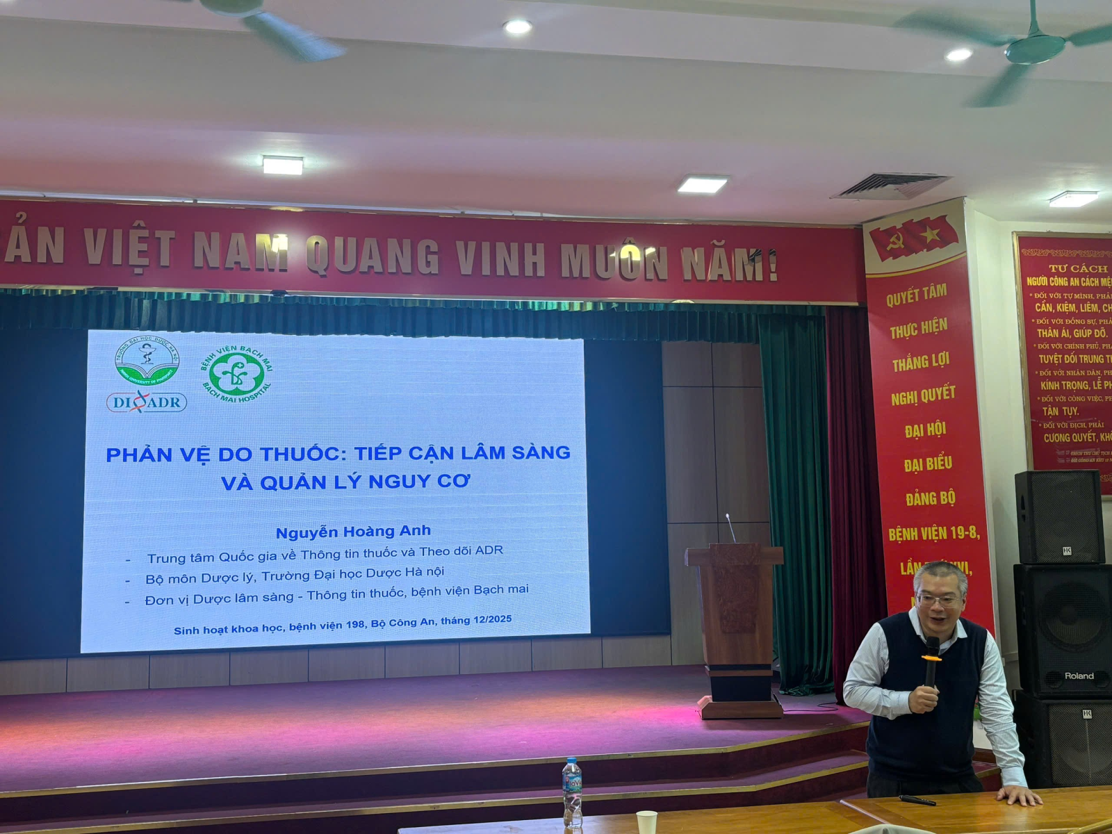Nhằm nâng cao kiến thức chuyên môn và kỹ năng bảo đảm an toàn trong kê đơn, cấp phát và sử dụng thuốc cho người bệnh, ngày 22/12/2025, Cục Y tế - Bộ Công an đã phối hợp với Bệnh viện 19-8 tổ chức lớp tập huấn “An toàn khi sử dụng thuốc trong điều trị” dành cho cán bộ, nhân viên y tế toàn bệnh viện.
