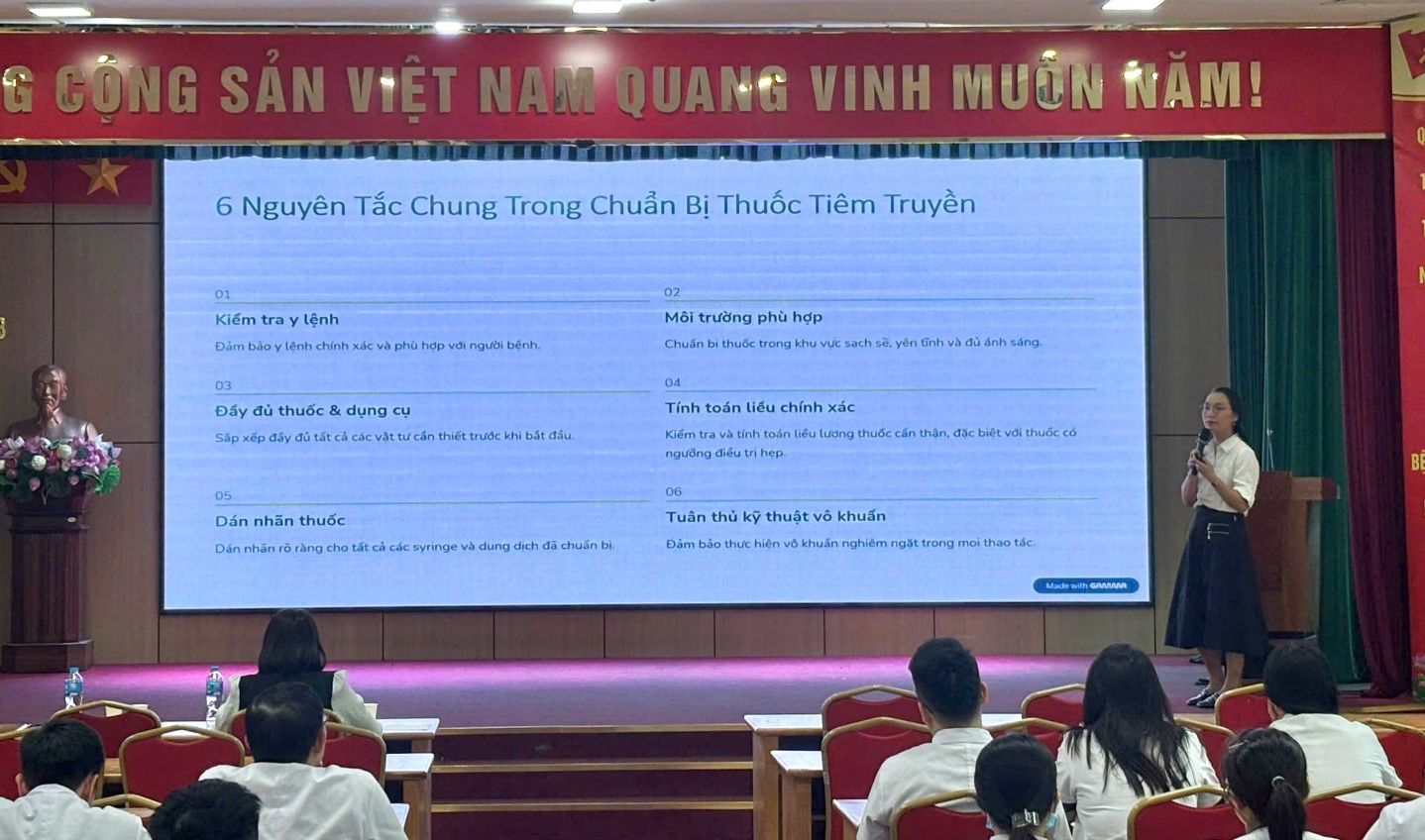 Tại buổi tập huấn, các giảng viên đã chia sẻ nhiều kiến thức cập nhật và thực tiễn về quy trình quản lý, sử dụng thuốc hợp lý – an toàn – hiệu quả; nhận diện và phòng ngừa sai sót thuốc cũng như trao đổi, giải đáp những tình huống lâm sàng thường gặp trong bệnh viện.
