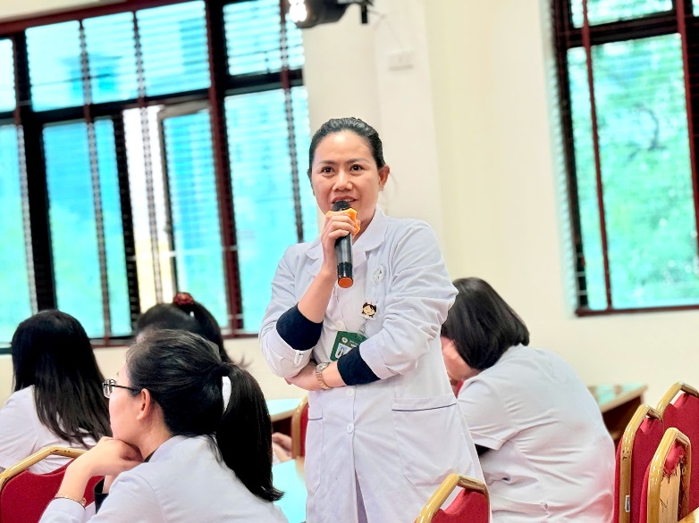 Đồng chí ThS Đoàn Thanh Loan – Điều dưỡng trưởng Khoa Ngoại Tổng hợp đã chia sẻ kinh nghiệm thực tiễn