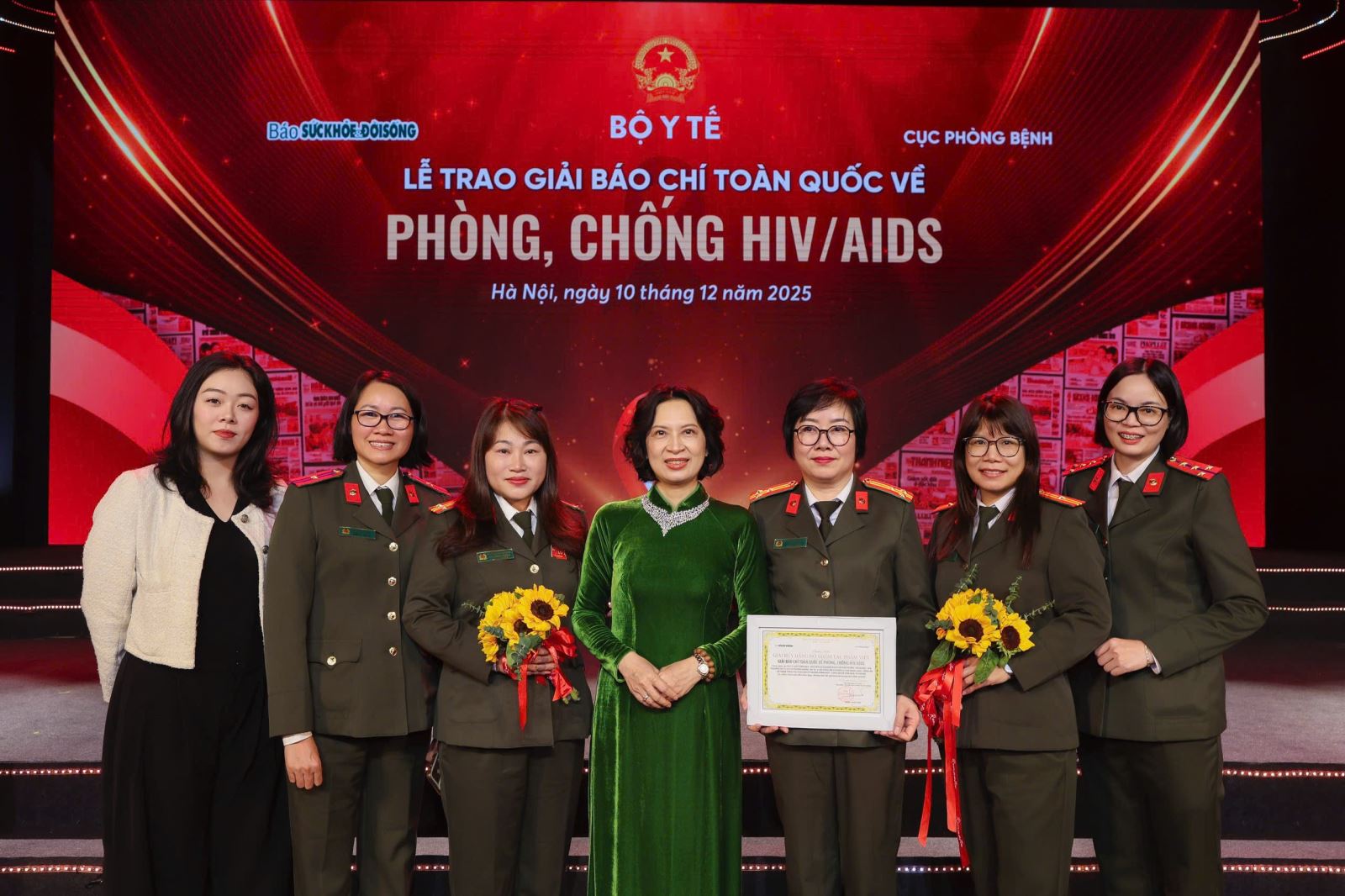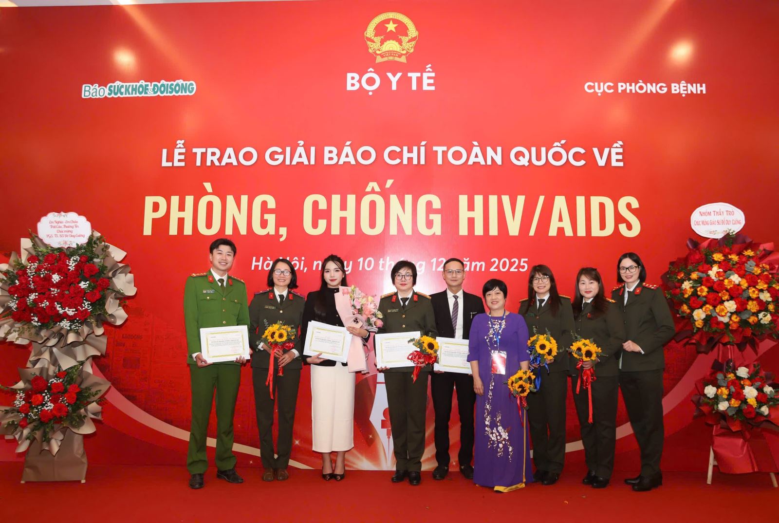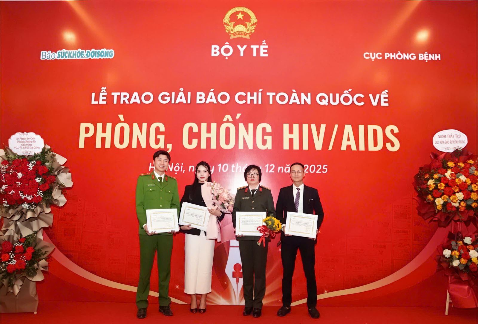 Tại Lễ trao Giải Báo chí toàn quốc về phòng, chống HIV/AIDS năm 2025, nhóm tác giả gồm Thượng tá. TS. Lê Thị Hương Giang (Bệnh viện 19-8), PGS.TS Đỗ Tuấn Anh, Thượng úy Hà Ngọc Linh và Đại úy Dương Minh Đức, nhà báo Bảo An đã xuất sắc được trao Giải Ruy băng đỏ, vượt qua hơn 1.200 tác phẩm trên toàn quốc.